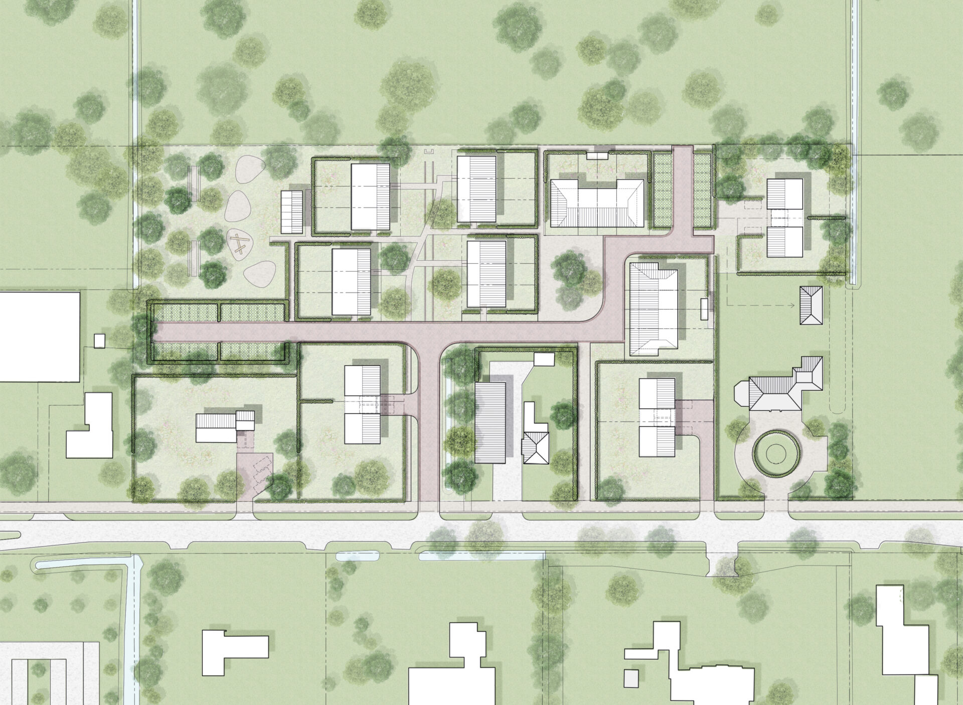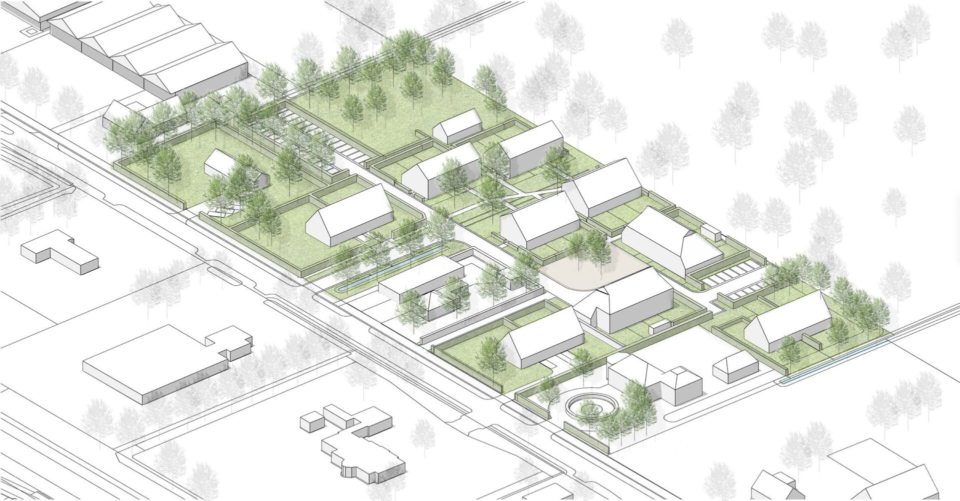 In the plan, the Hallenhuis archetype is translated into a residential environment where historical recognizability and contemporary living needs come together. The traditional forms and proportions are preserved, while the layout remains flexible and adaptable to the needs of modern residents. Through the coherence of the individual volumes and the communal yard structure, an identity emerges that gives the place character and continuity.